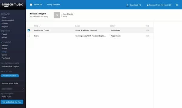 If you have subscribed to Amazon Music Prime and Amazon Music Unlimited, you can download Amazon Music songs for streaming offline directly. Here's the detailed guide on how to download Amazon music to iPhone with subscriptions: