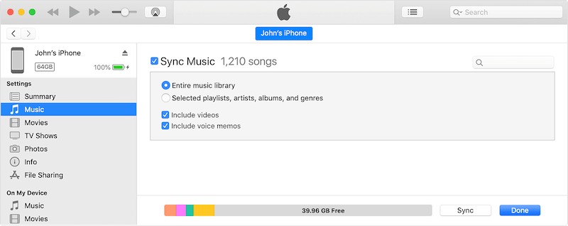 Step 3. Tick on "Sync Music". Under it, select "Selected, artists, albums, genres and playlists".
