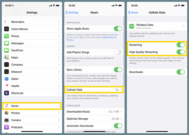 Sometimes you may notice that the music doesn't sound as good as it should be, and you can easily tell the difference even if you are not using high-end audio equipment like high-res headphones or a hi-re music player. If that's the case, you should probably check if the "High-Quality Streaming" option is enabled in the music setting. It's a hidden feature that will not be activated when you are streaming music with your mobile cellular data.