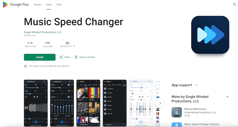 Developed for Android systems, Music Speed Changer allows you to change the speed of audio files on your device in real time without affecting its pitch. After you transfer the Apple Music downloads to your Android device, take the following steps to change the speed as you want: