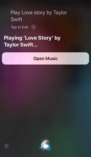 If you suddenly want to play a song while you listen to your Apple Music, you are free from turning on your Apple Music and typing the songs you intend to. All you can do is to ask Siri to play the songs name or to play the songs name by the artists. For instance, when listening to some kinds of music, I suddenly want to listen Love Story sang by Taylor Swift and can ask Siri to "Play Love Story by Taylor Swift". At this time, I can listen to this song immediately.