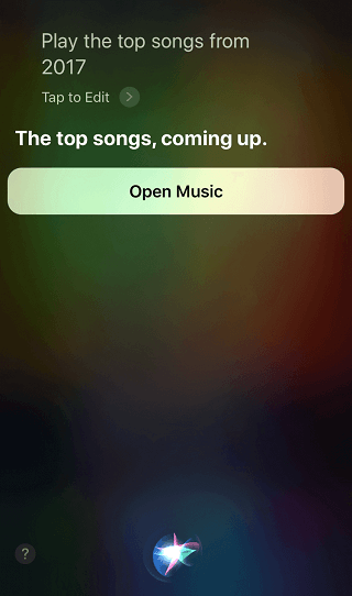 If you want to listen to some songs which are listed on top chart playlists in a certain year, you can just ask Siri in the following way "Play the top songs from a particular year". At this time, I am going to ask Siri to play from 2017, which help you know more popular songs from 2017.