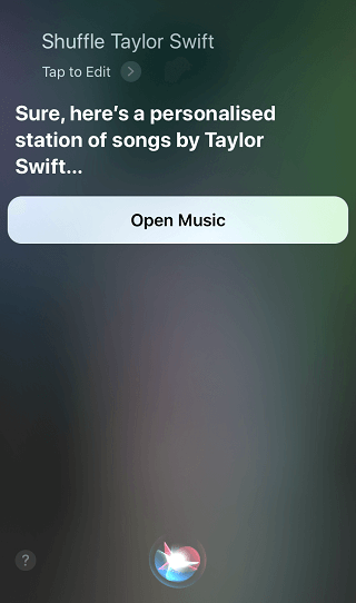 When listening to some songs, you want to shuffle some songs of some artists or some album. At this time, you can ask Siri to "Shuffle the singer name or album". At this time, I am going to ask Siri to "Shuffle Taylor Swift".