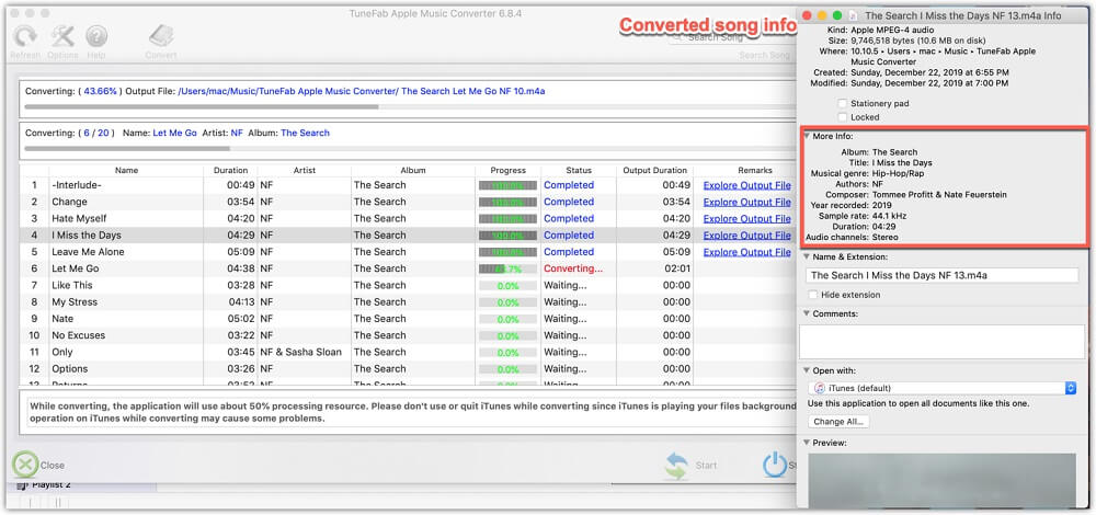 TuneFab Apple Music Converter is the best tool to convert iTunes songs, Apple Music songs, iTunes podcasts, etc. to other popular audio formats. It can strip DRM off the iTunes music and save them as high-quality MP3, M4A, AAC, AC3, AIFF, and AU files. What's more, it supports up to 10X faster conversion speed, which allows you to convert a batch of songs from iTunes in the shortest time possible.