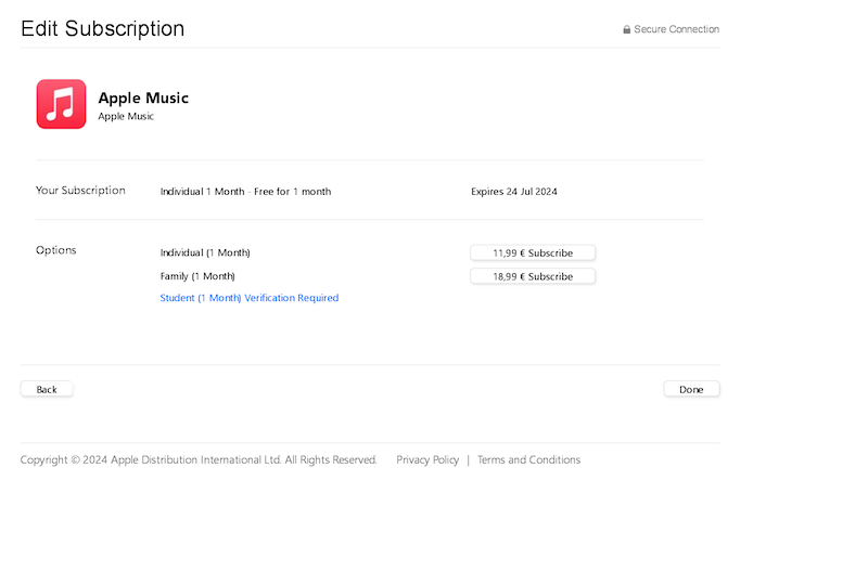 STEP 3. Navigate to "Settings" > "Subscription" and check if your subscription is still valid. If not, renew it and the Apple Music playlists will return again.