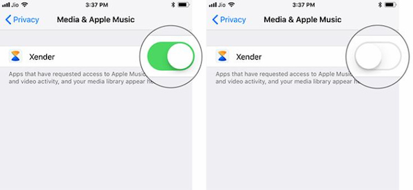 Step 3: Now you can see a list of apps that has ever asked your permission to turn on Apple Music features. Simply find the app that you want to remove and turn if off by moving the slider to the left.