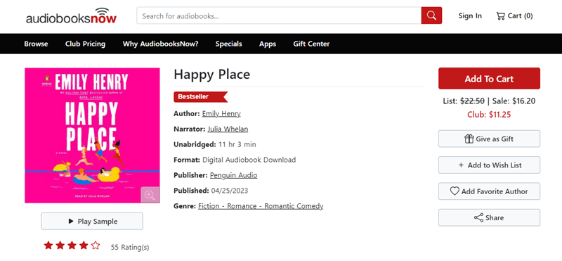 And still, you can purchase a membership to the Club Pricing Plan, which gives members 50% off of their first book each month and 35%-40% off of books after that. There are no credits for free books like other plans, but money-saving is still possible. They also offer a fully-featured app that allows you to search, browse, join, purchase, listen, and manage your account.