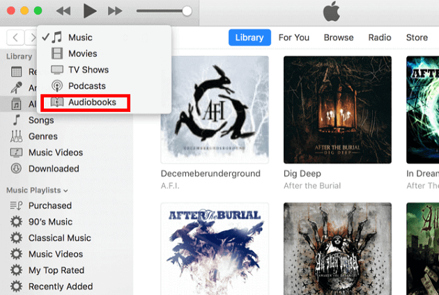 Step 1. Open up iTunes and go to the Audiobooks section.