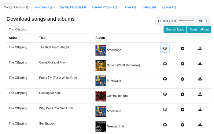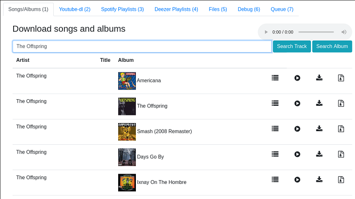 Step 2: If you set "use_mpd=True" in the "settings.ini", the backend will connect to mpd (localhost:6600) and update the music database. Pressing the play button will download the music.