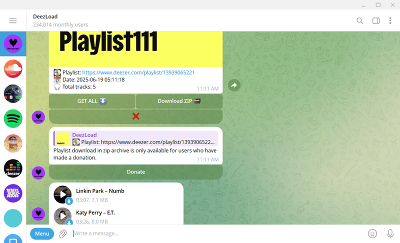 Step 2. Start a chat with the bot and directly send a Deezer song/playlist link to it.