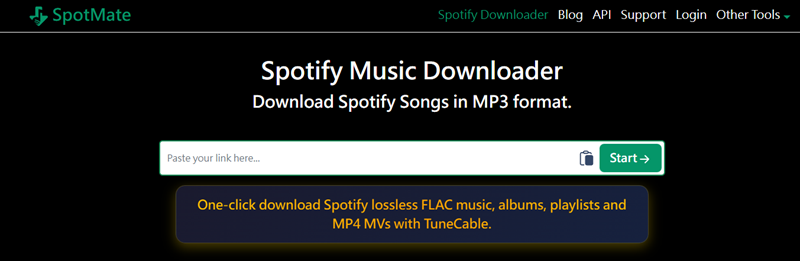 Spotmate è un'altra soluzione "cloud-based" molto popolare tra chi cerca di scaricare musica da Spotify su telefoni Android o iOS senza passare dal PC. L'interfaccia è pulita e supporta il download diretto.
