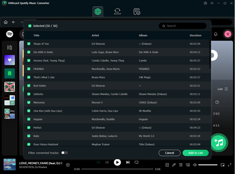 Offre una buona velocità di conversione (fino a 10X) e mantiene i tag ID3. Tuttavia, l'interfaccia utente è un po' meno moderna e intuitiva rispetto al web player di TuneFab, e a volte richiede l'installazione dell'app Spotify desktop per funzionare correttamente.