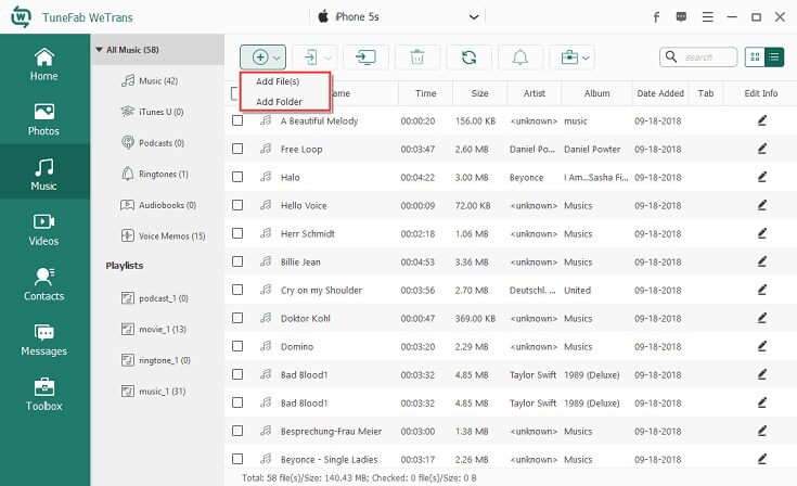 TuneFab WeTrans is a professional iOS data transfer. TuneFab WeTrans has a simple user interface, making it easy to use the program. You don't need any tech knowledge for using this program. When it comes to the performance, all music in your computer can be transferred to your iPhone easily. And the program won't damage or erased any data store in your iPhone.
