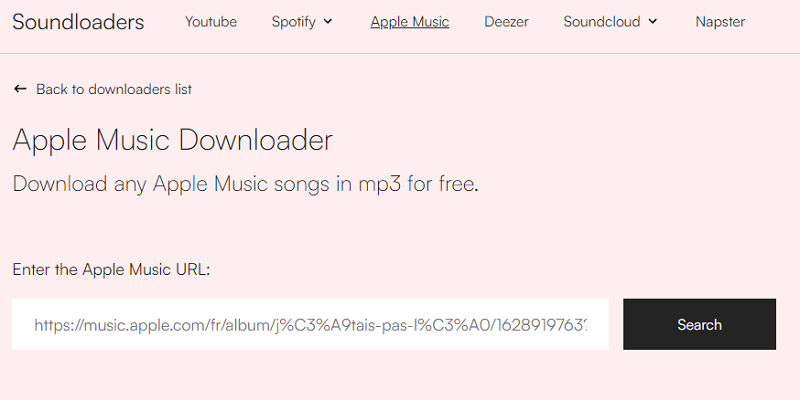 AAPLmusicDownloader is another online Apple Music ripper you can use. Unlike other tools, it allows you to paste the link of an Apple Music playlist or album directly into the search box, read it, and then generate a downloadable zip file for you. You can get a compressed package of multiple Apple Music tracks with just a click.