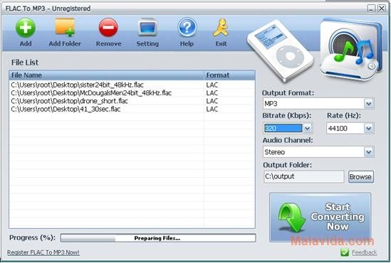 STEP 3. Determine the output format and simply click the "Start Converting Now" icon to convert FLAC to MP3 right away.