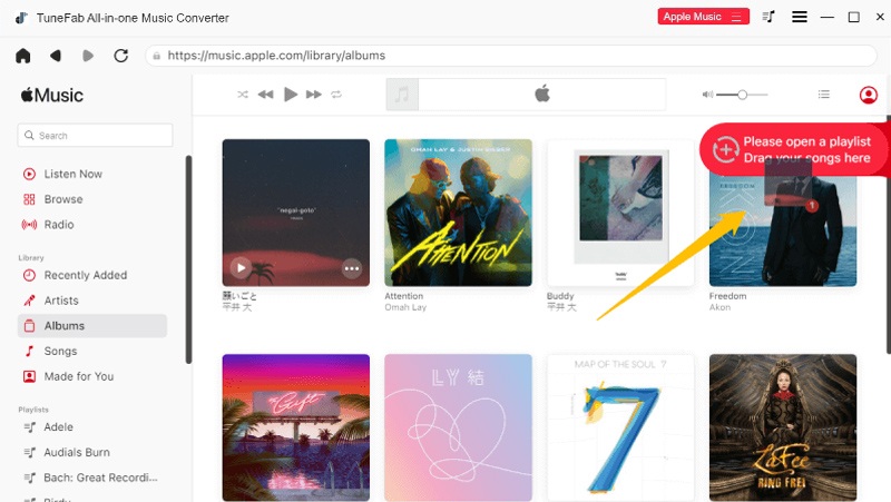 Browse the Apple Music library to find your favorite songs, playlists, or albums. Then, drag and drop them to the conversion list on the right. Then, TuneFab will automatically fetch music information.