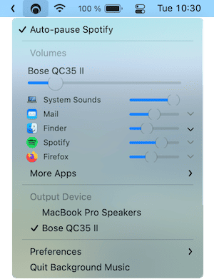 Stap 2. Start de app. Deze verschijnt in de menubalk. Van daaruit kun je het volume van alle actieve apps bekijken en regelen.