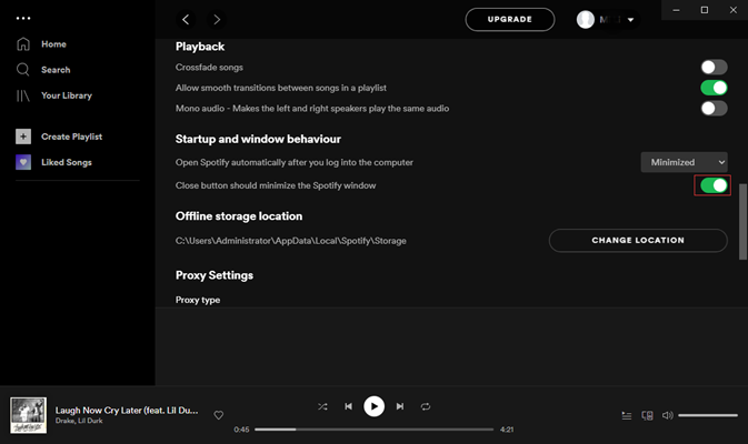 Stap 4. Zet de knop naast aan Met de sluitknop minimaliseert u het Spotify-venster.