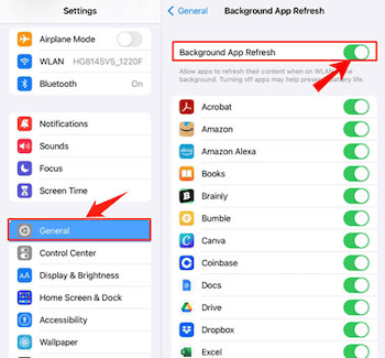 Stap 2. Tik Snel naar, Selecteer dan Achtergrond-app vernieuwen.
