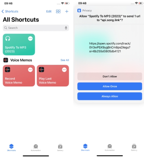 Para usuários de iOS, Hub de rotina é o aplicativo para baixar playlists de MP3 do Spotify que você não pode perder. É um atalho gratuito que funciona em dispositivos iOS, permitindo baixar playlists inteiras do Spotify com apenas alguns toques. Tudo o que você precisa fazer é adicioná-lo como atalho e copiar e colar o link do Spotify no atalho. Depois, a ferramenta analisará automaticamente o link e fará o download da sua playlist do Spotify.