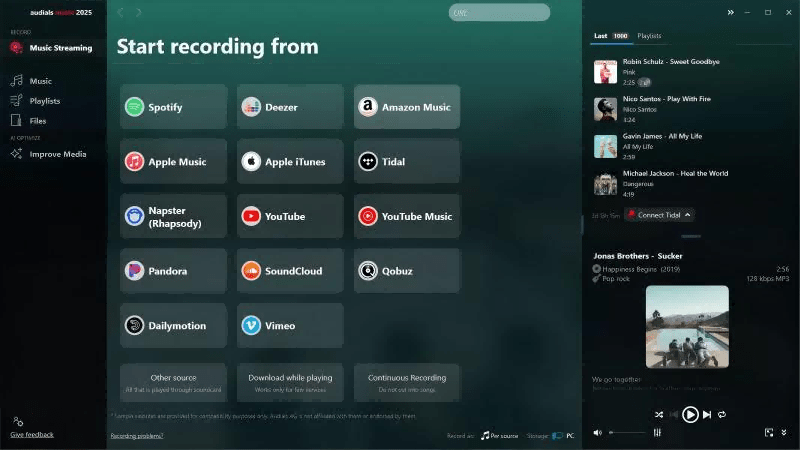 Step 3. Play the wanted music on the right panel, and Audials Music will auto-save the detected tracks as separate audio files.