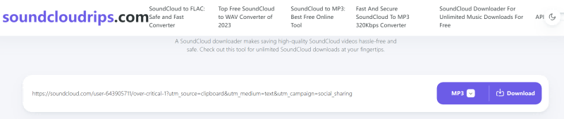 For users looking for a quick, no-installation solution, Soundcloudrips provides a free and convenient way to download SoundCloud tracks in various formats. The tool works directly in your browser, supports multiple audio formats (including MP3, M4A, FLAC, and more), and doesn’t require any account registration or software download.