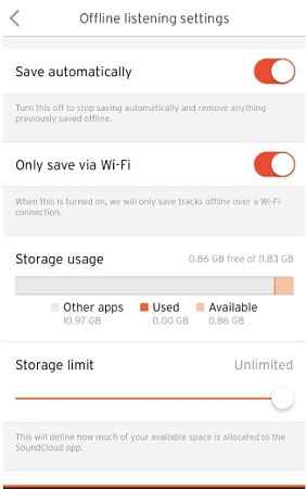 If you’re worried about auto-downloading taking up too much space, you can also set a storage limit in Offline Listening settings to control how much memory SoundCloud uses for automatic downloads.