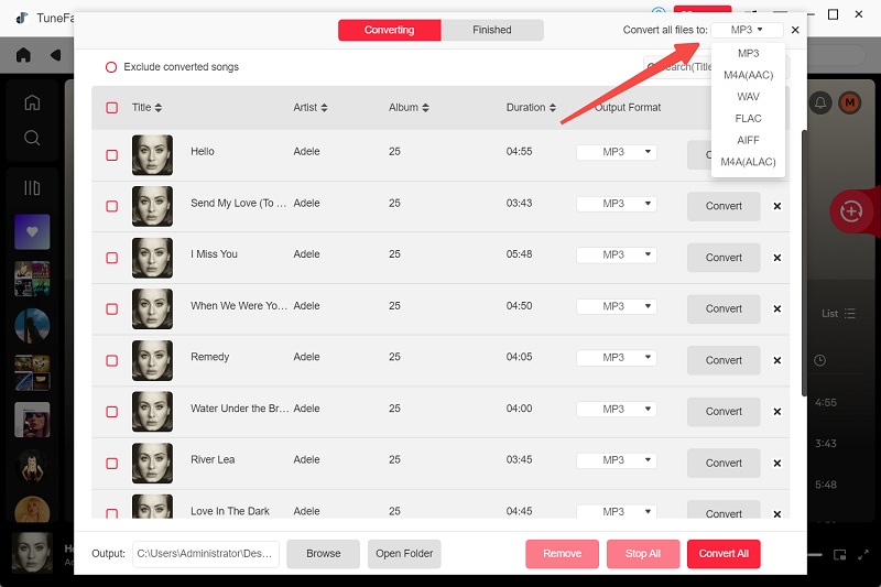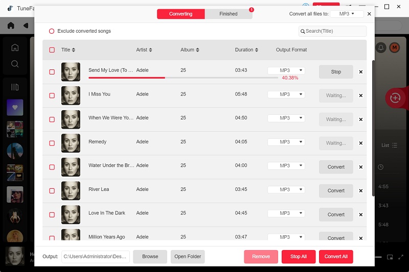 TuneFab All-in-One Music Converter is also featured with an intuitive interface. Check out the detailed guide below. You’ll find how easy it would be to get high-quality MP3 of Adele’s songs with TuneFab All-in-One Music Converter.