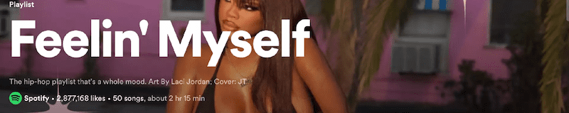 Feelin' Myself is a playlist on Spotify that's all about feeling good and confident. The playlist shines a spotlight on female hip-hop representatives, featuring captivating tracks from artists like Princess Nokia, Nicki Minaj, and Meghan Thee Stallion. It's not just a playlist; it's an opportunity to immerse yourself in the empowering world of female rappers in the industry.