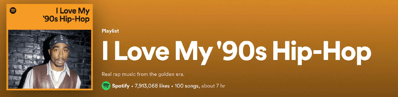 I Love My 90's Hip-Hop is a nostalgic and groovy playlist on Spotify that celebrates the golden era of hip-hop. The playlist features classic hits from legendary hip-hop artists such as Tupac Shakur, The Notorious B.I.G, Dr. Dre, and Nas, among others, taking listeners on a trip down memory lane.