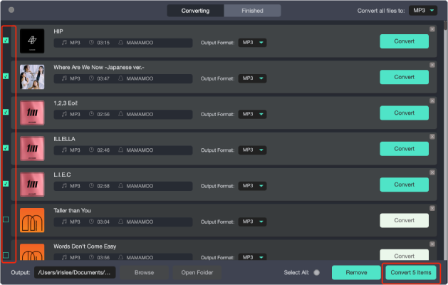 Select the music you want to download and then click the "Convert Now" icon on the bottom right corner, and start downloading.