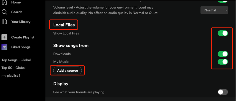 Step 2. You can scroll the page down to find "Local Files". Then, switch it to GREEN to turn on "Show Local Files".