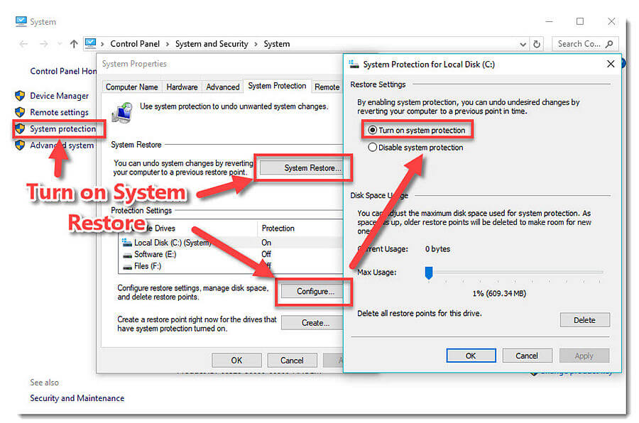 Right-click to "This PC" and the choose "Properties" and then you will see the whole system settings, like Device Manager, Premote Settings and more. Here choose "System protection". Here is System Promote that you can create a restore point and then set a Windows Restore to use Spotify app.