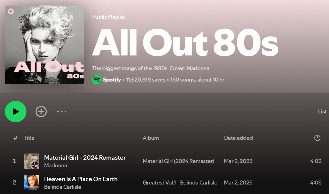 If you want to relive the unique style and charm of the 80s, listen to All Out 80s. This playlist contains hundreds of classic 80s songs, covering a wide range of styles from pop to rock.