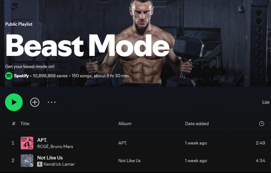 Your best bet is the Beast Mode - one of the best Spotify workout song lists. It features artists like Drake, Future, Pop Smoke, and more. The strong beats will help you stay focused. Put on your headphones and feel your muscles move to the songs on the list. With sweat left behind, you will experience an adrenaline rush.