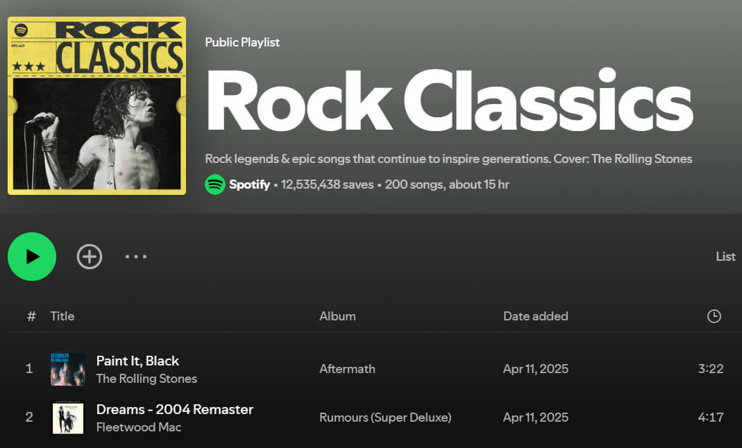 With its rousing and powerful melodies, Rock Classics is not only the best Spotify running playlist but also great for car trips or high-intensity fitness workouts.