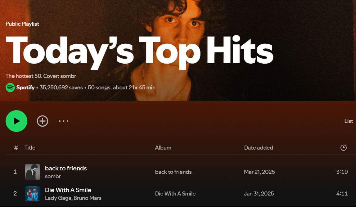 Its influence is not only reflected in the number of followers. Every song in this playlist is almost guaranteed in terms of heat and quality. You can hear hit singles like Texas Hold'em by Beyoncé, Yes, and? by Ariana Grande, Beautiful Things by Benson Boone, and more.