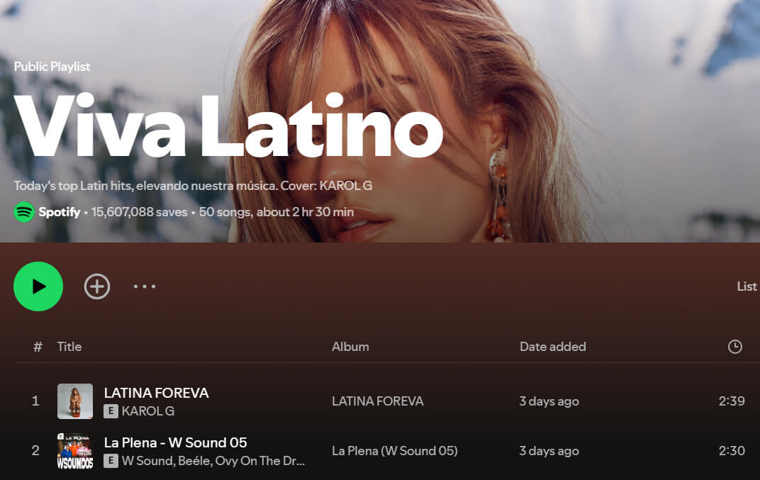 This song list is definitely trustworthy as it features many well-known artists such as Karol G, Myke Towers, Bad Bunny and J Balvin. All of these people are recognized by the international market. If you want to start learning about Latin music, you can also start here.