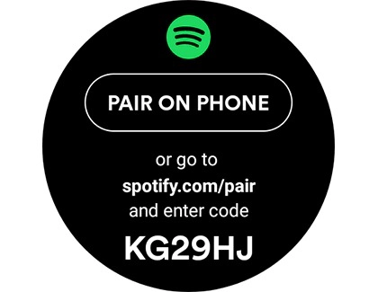 Step 1: Tap "Log in" and tap "Pair on Phone". You may be asked to log into your account on the phone again. Tap "PAIR” again and enter the code. Then, the Spotify app on your watch should be logged in automatically with the same account as your phone.