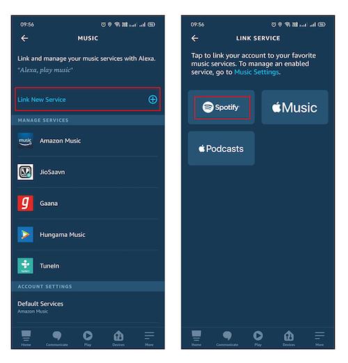Step 3. Click the "Link New Service" option and select "Spotify" from the available service menu.