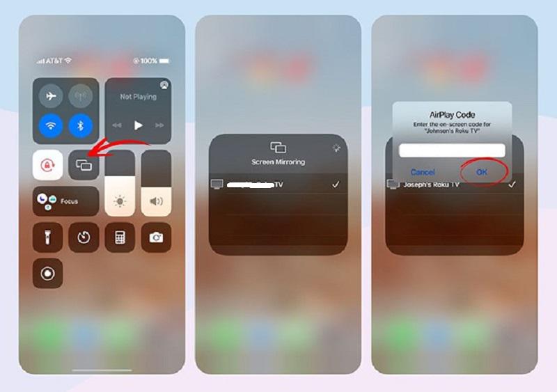 STEP 3. Access the Control Center by swiping down from the top right corner of your screen (on iOS 13 or later). Tap the AirPlay icon, select your Apple TV from the list of available devices, and connect your iOS device.