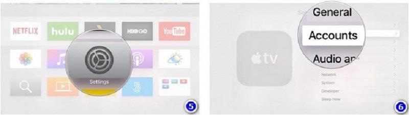 STEP 3. On Apple TV,turn on Home Sharing by navigating to Settings > Accounts > Home Sharing. Enter your credentials.