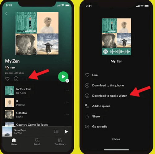 If you wish to throw down your iPhone and directly play downloaded Spotify playlists on Apple Watch without your iPhone, you would need to transfer them to your Apple Watch first. To do this, please follow the guide.