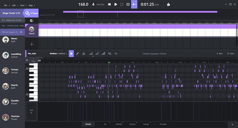 For professional musicians who want to take full control over their music recordings and create awesome music artwork, don’t miss ACE Studio, a professional music editing software with advanced AI voice changing technology embedded. This voice to music converter can transcribe audio to MIDI, with tone quality retained at the same level as the original sources. There are also flexible parameter settings available to let you adjust the quality and music styles to your preferences. However, as this software offers commercial services for professional musicians, individuals, and beginners may find its functions less friendly.