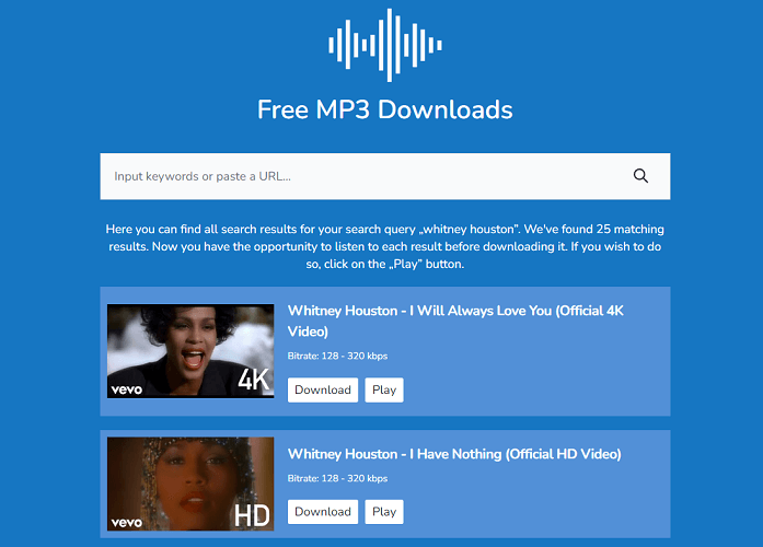 To ensure a nice music streaming experience offline, MP3 Juice provides high audio bitrates to save MP3 downloads offline. Although the tool doesn't offer customized options to select, its default quality will be maintained at the highest 320kbps, which can surely bring you a nice music playback performance.