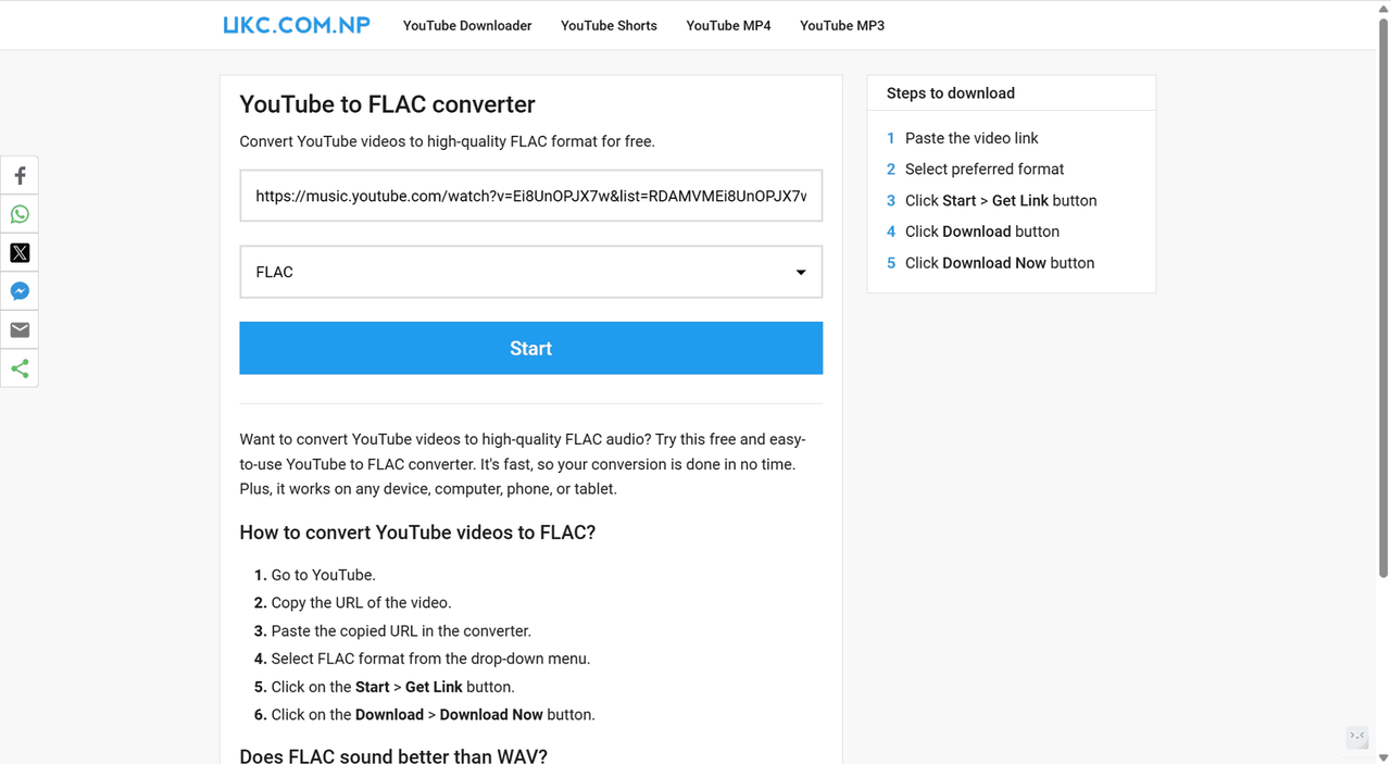 As another online YouTube to FLAC converter, UKC YouTube to FLAC Converter offers the same experience as 4KDownload.to. Simple to operate and convenient on any device. But it comes with a few downsides. Like 4KDownload.to, it is filled with ads that can be annoying when you click on the download button, and it doesn’t support batch downloading, meaning you’ll need to convert each song individually.