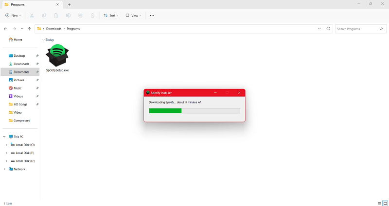 第一步。解压文件并运行“SpotifyFullSetup_v1.1.22.633.exe”。安装并启动后,关闭它。