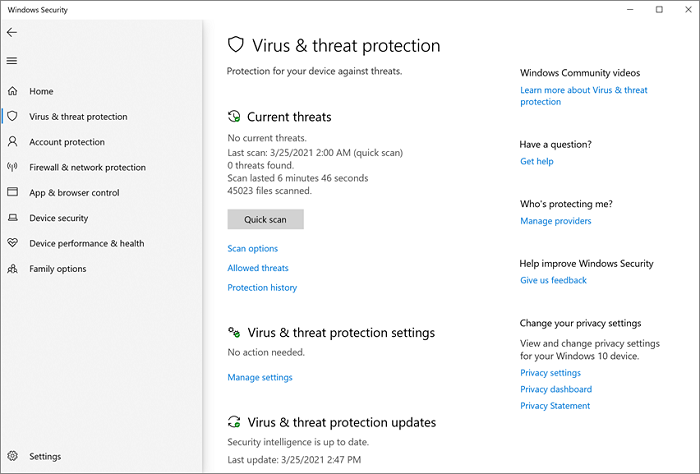步骤 2。 转到“Windows 安全”>“病毒和威胁防护”,单击“允许的威胁”,然后勾选“删除所有允许的威胁”。