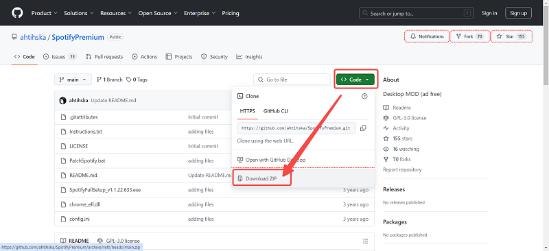 第一步. 下载 SpotifyPremium 的 ZIP 文件。